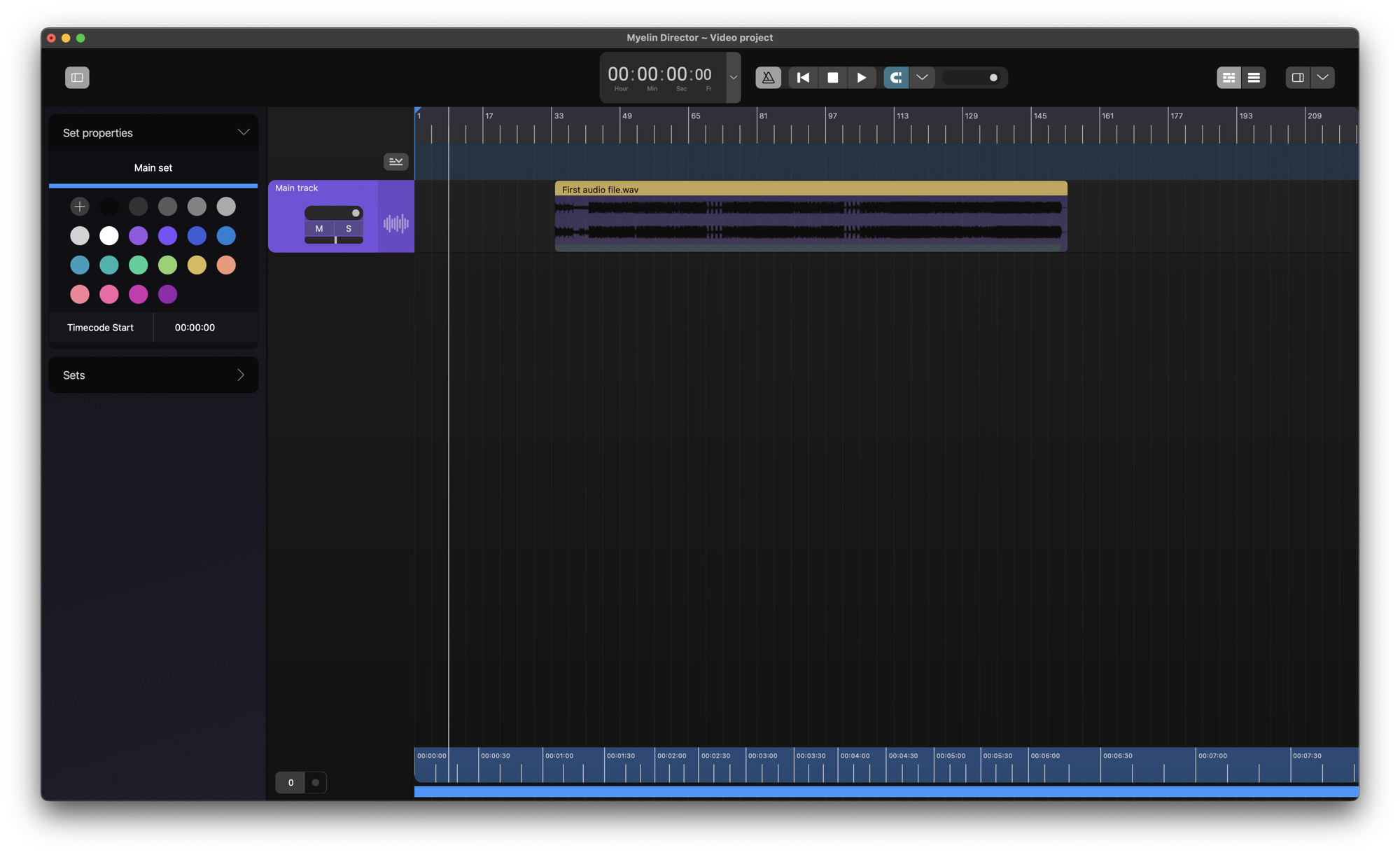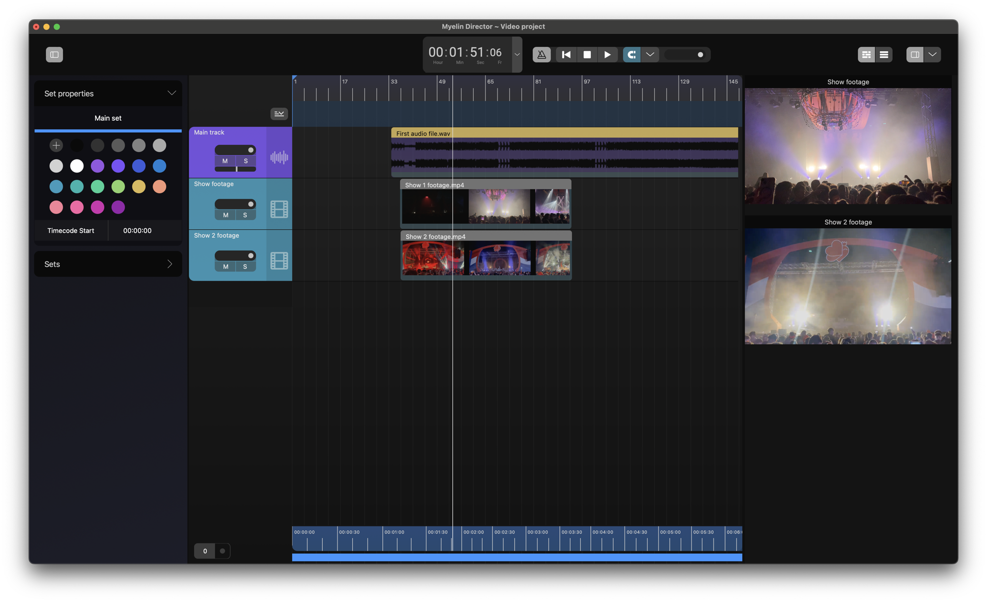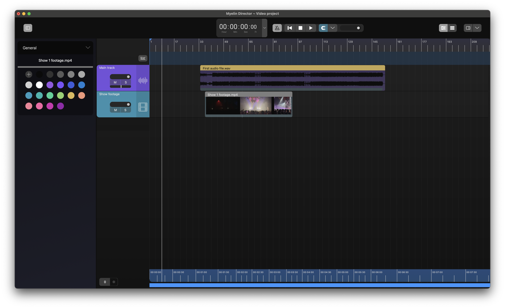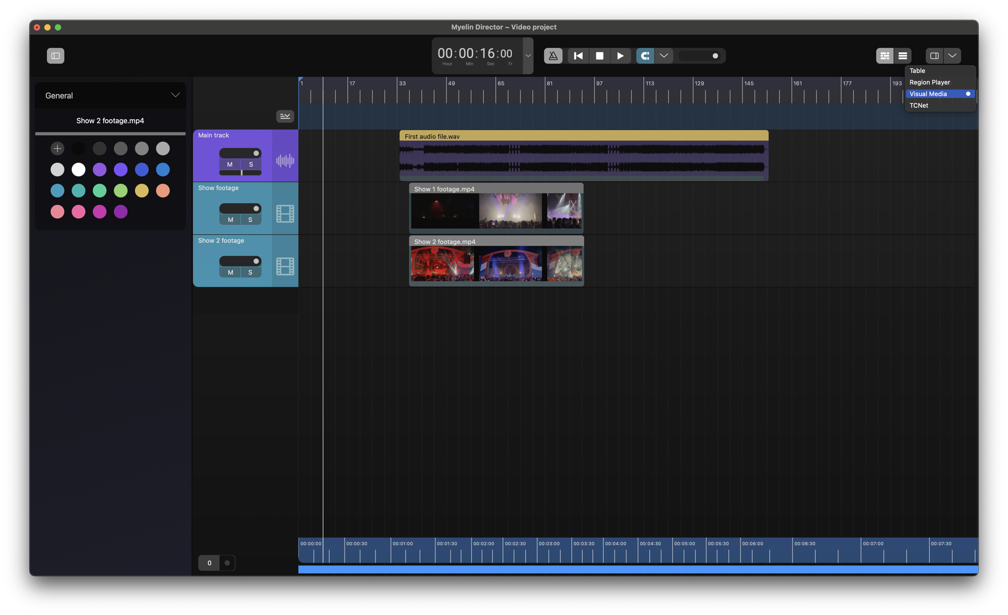 Please note: video files in Myelin Director are played using the OS's native video player. The audio of the video is therefore routed through the OS's selected audio device as well. For several formats, you can load the video on an audio track as well, to have control of the audio outputs.